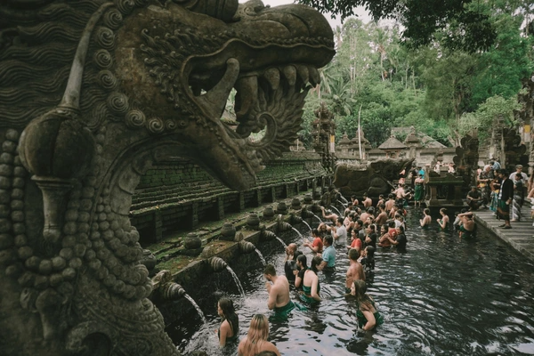Next, visit the holy water temple Tirta Empul, famous for its 14 sacred purification fountains. Participate in or observe the traditional cleansing ritual (melukat), guided respectfully through the process.