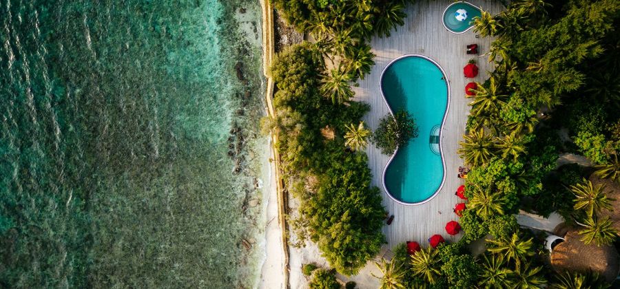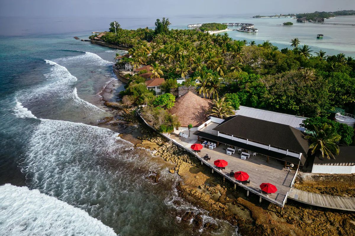 As the sky transforms from daylight to dusk, walk into the Rayvilla bar to catch the best sunset.