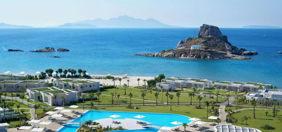 Spacious, elegant, contemporary-style rooms in the main building. Panoramic windows and a furnished private balcony deliver stunning views of the beach and Aegean Sea, or overlook the beautifully landscaped gardens.