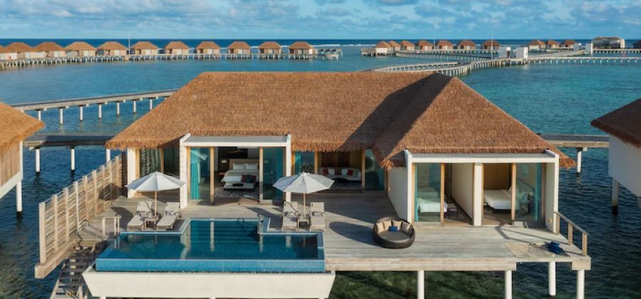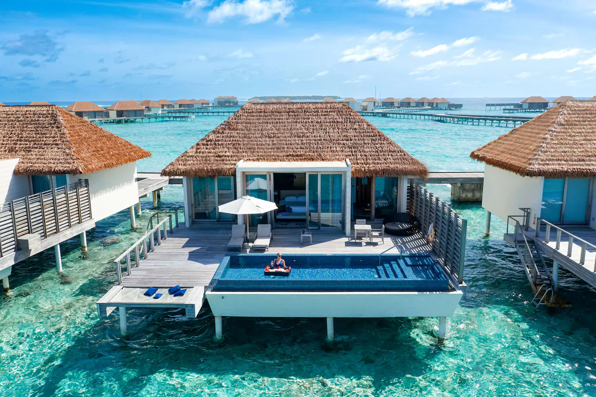 It has over 128 spacious beach and overwater villas boast private pools and stunning views. Enjoy snorkeling with marine wildlife, or thrilling watersports like jet skiing and seabob. Explore with our 5-star dive center, relax with a treatment at Blu Spa, or do yoga at our overwater pavilion while the little ones create lasting memories at our Kids Club.